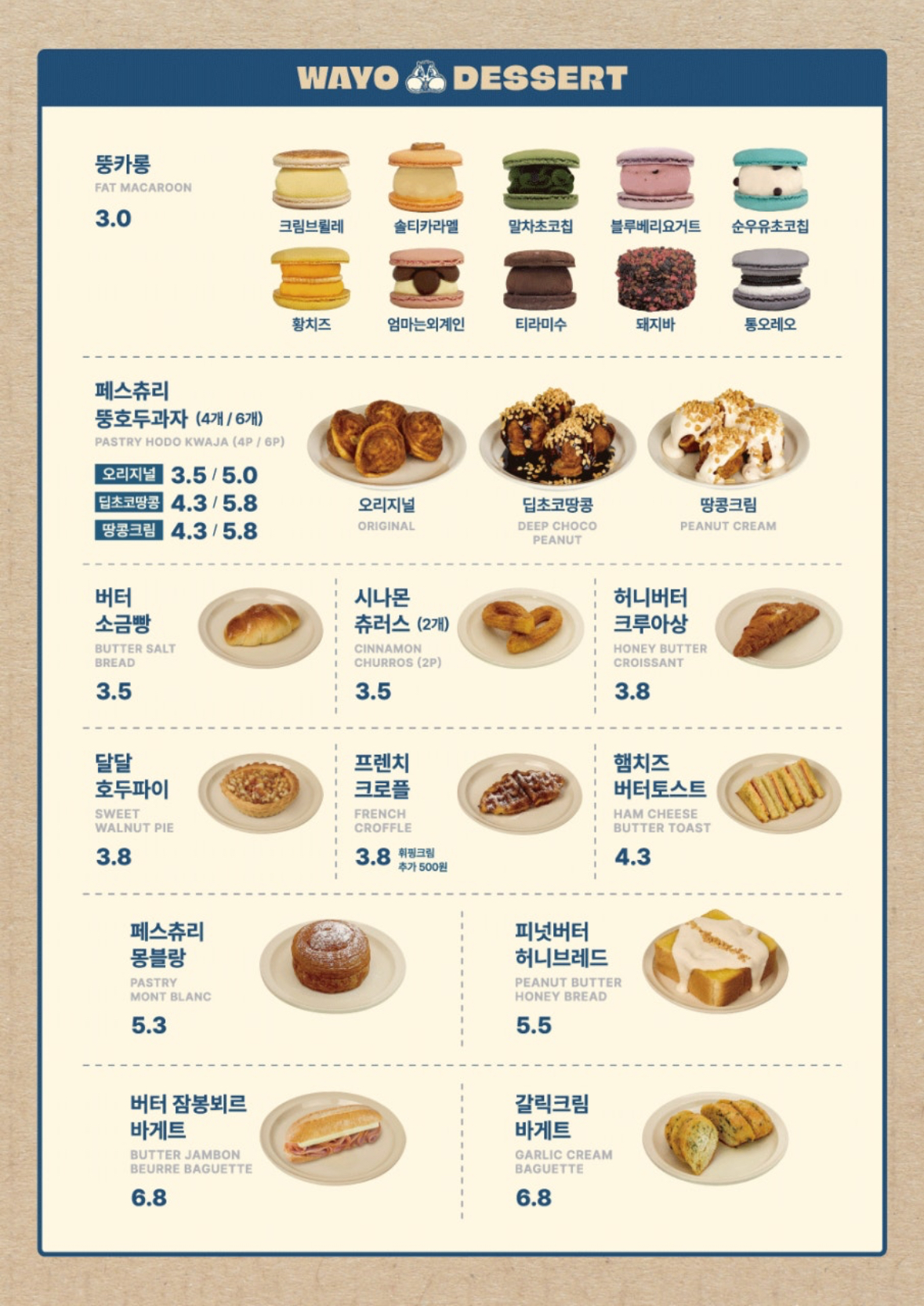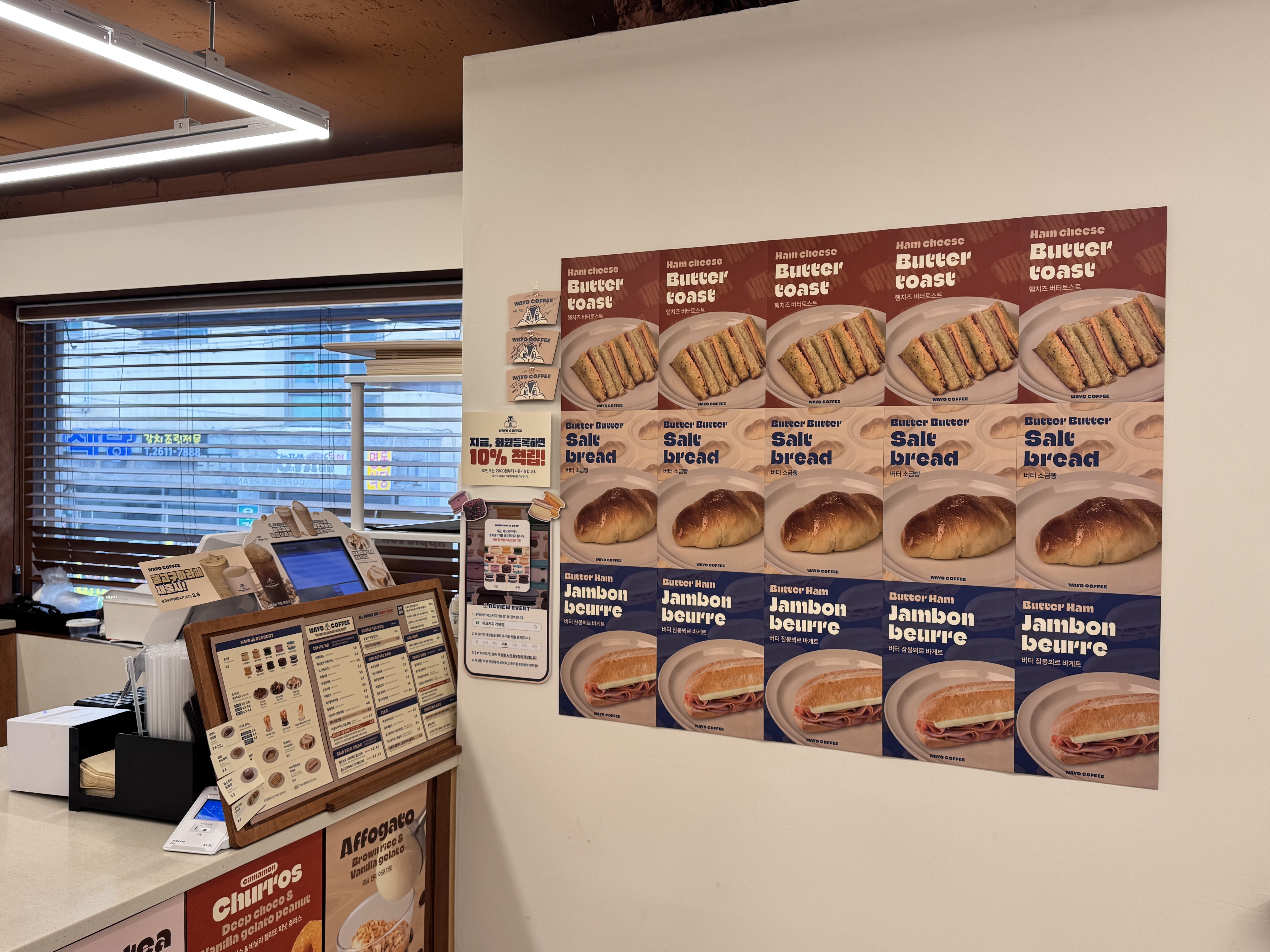오른쪽 츄러스와 토스트 종류가 추가된 거 같아요 ☻